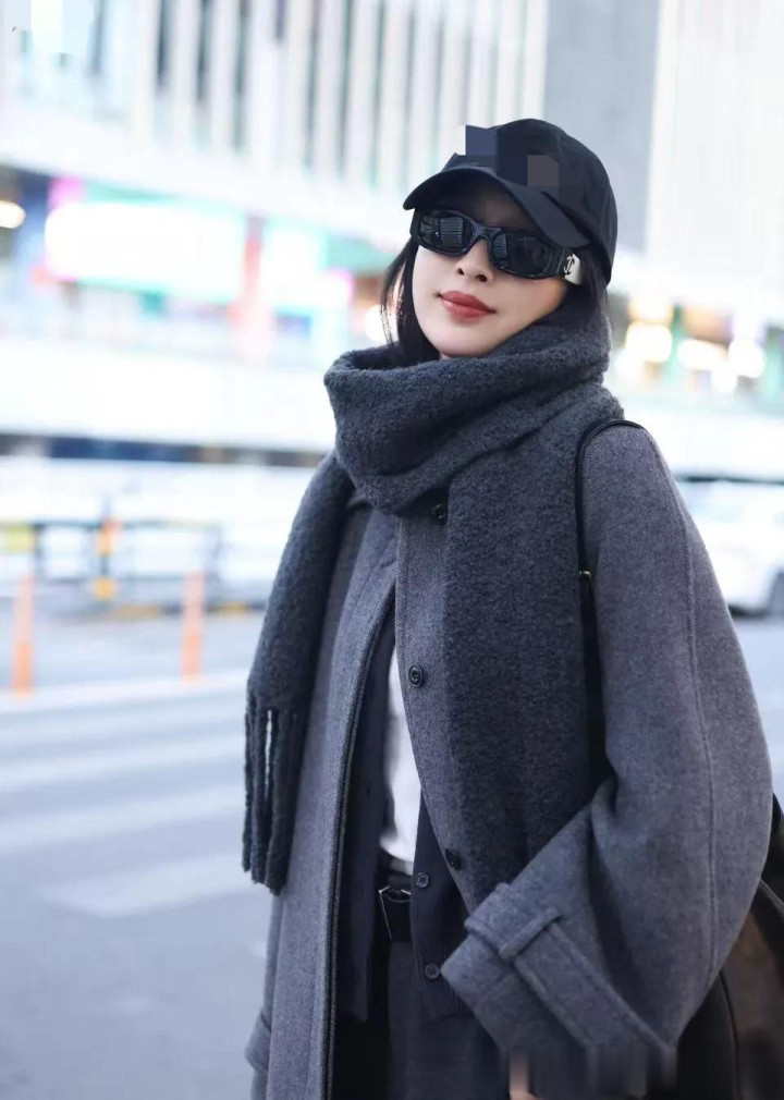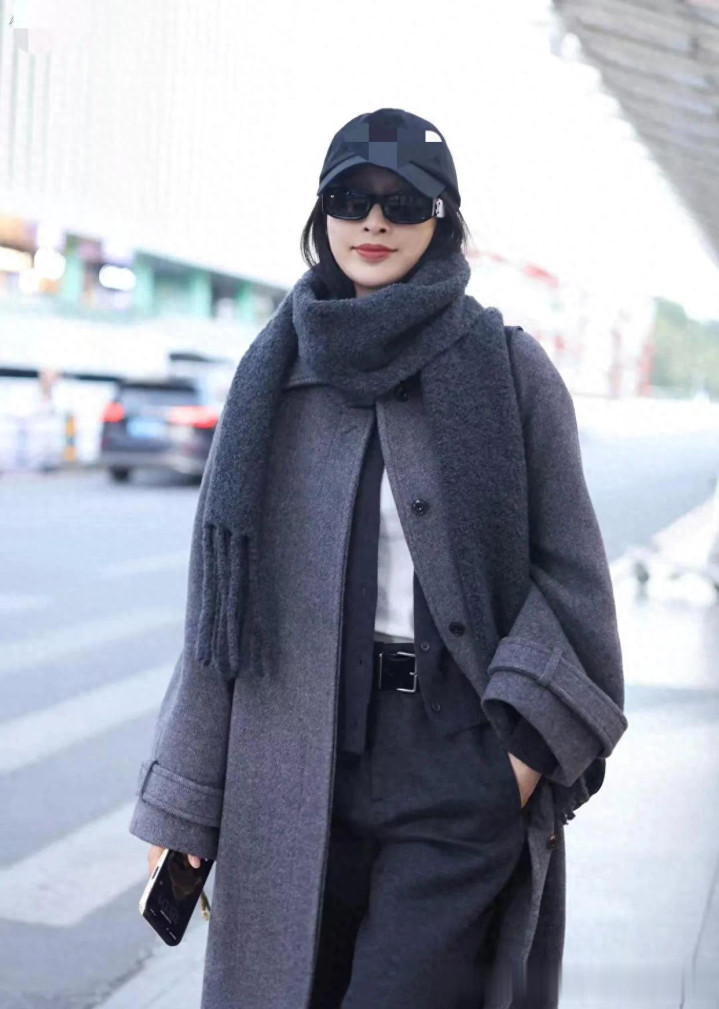 张俪不愧是穿搭高手! 灰色大衣+针织衫+半身裙, 时髦洋气又高级